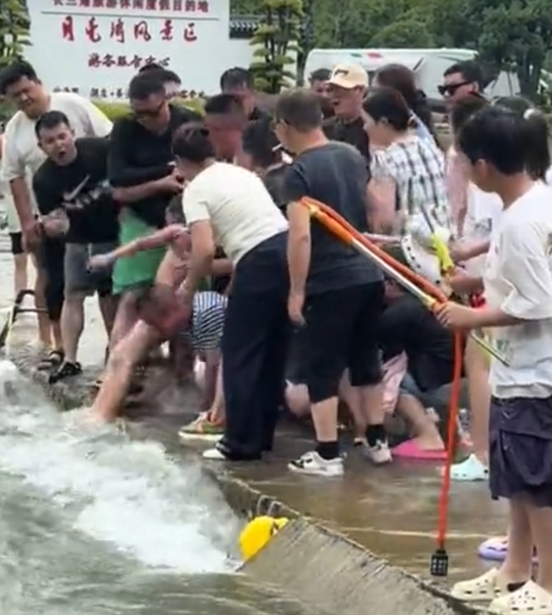 一名白衣大哥眼疾手快死死抓住孩子手臂